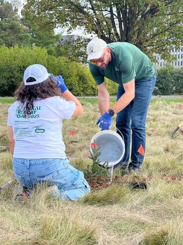 This year marked the 14th edition of National Tree Day, and we were proud to support Tree Canada’s flagship celebrations here in Ottawa. The week included a corporate planting event at Hogs Back Park on September 24th, followed by a large community event at Remic Rapids Park on September 27th. Together, volunteers planted more than 600 native trees and shrubs during both events, working to enhance local biodiversity, improve access to green space, and deepen people’s connection to the land around them. With four out of five Canadians now living in urban areas, it’s more important than ever to grow and safeguard the resiliency of Canada’s urban forests; events like National Tree Day help make that a reality.